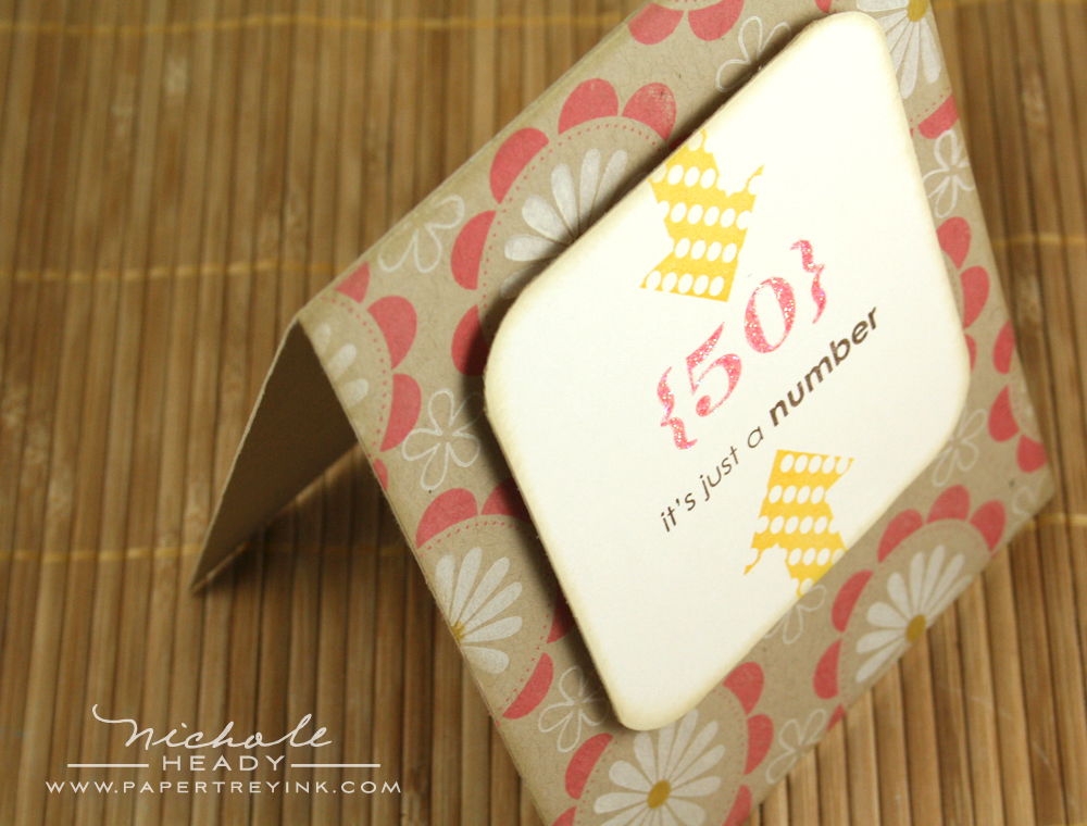 I started by stamping the "50" in Berry Sorbet using the numbers from Get to the Point. "It's not just a number" (from Birthday Bash Sentiments) is added underneath it using Dark Chocolate ink.