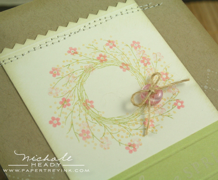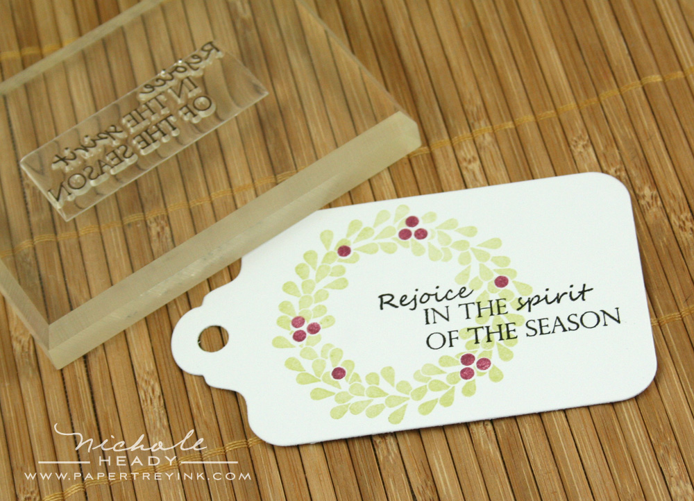 I die-cut the tag from Stamper's Select White cardstock then stamped the wreath with Spring Moss ink.
