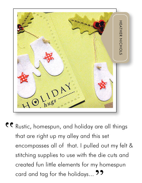 This special edition puts a holiday spin on everything, making it perfect for your upcoming craft projects for the winter season. You will love mixing and matching all of the different elements in this set. You can embellish the mittens & stocking with stars or sprigs of evergreen. You can add embellishments to the evergreen garland with stars or hearts. So many possibilities! And you will love all of the heartfelt & homespun sentiment selections.