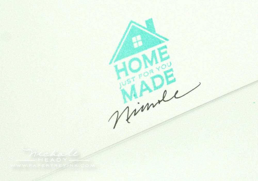 The back of this card was stamped with one of my favorite labels from the new Handmade Hodgepodge set.