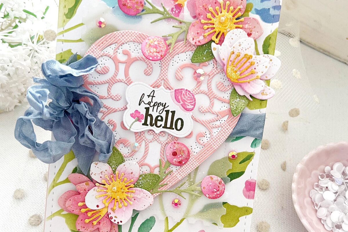 Rema T. really caught my eye with her use of the negative die cut from the Wonderful Words: Hello die! I love her stamped diagonal stripes from Sketched Shapes and how she layered the arrow, circle and sentiment right over the top!