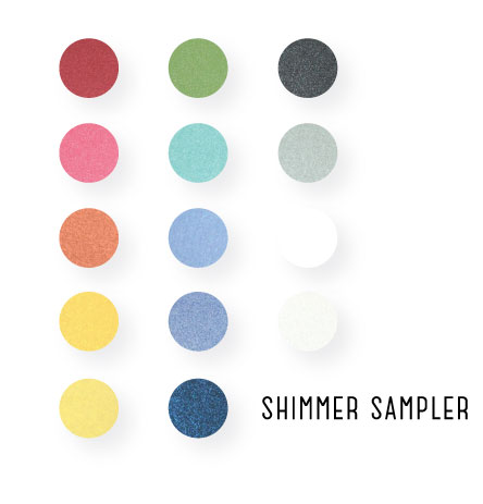 Let's begin with the new Shimmer Sampler, featuring all 14 colors of cardstock with a total of 18 sheets.