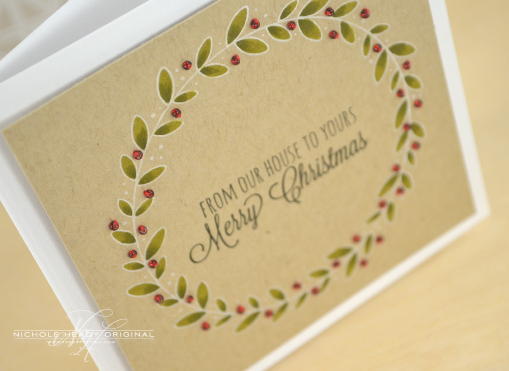 I stamped the wreath a few times without re-inking to get this nice generational effect. I used Liquid Pearls to highlight the dots for the berries.