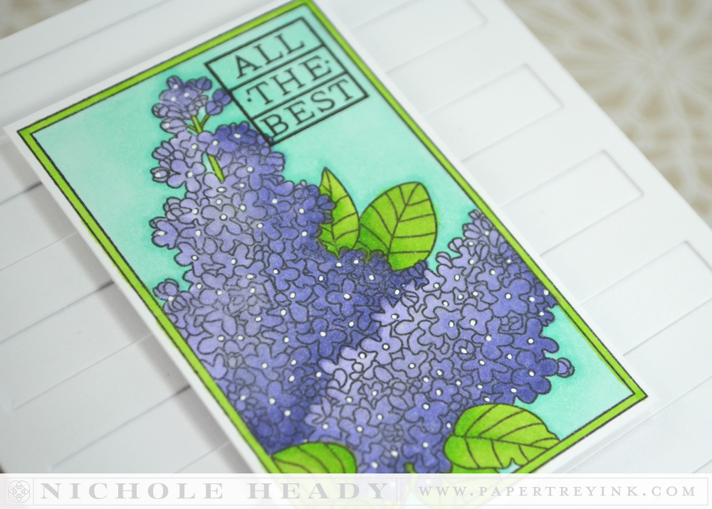 I used some darker tones that I mixed up with my Splash Inks to paint this lilac image stamped onto Classic Kraft cardstock.