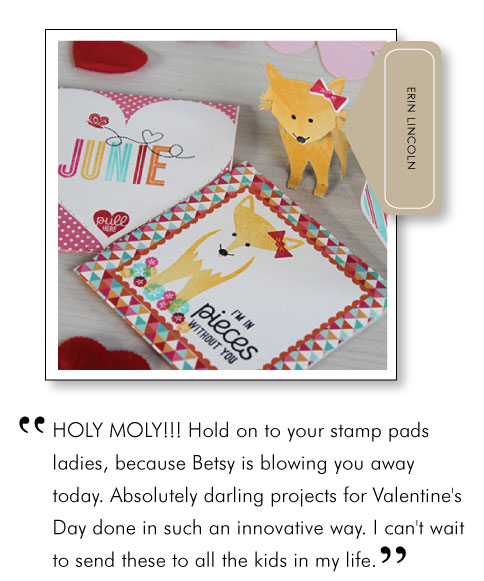 And here is an amazing video that Betsy did, showing you more details about this collection and how it all works together! She even provides a few tips on how your kids can help make their own valentine's with these products!