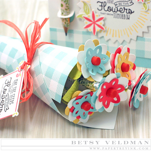 Betsy says, "I just love the Seeds of Knowledge stamp set! So many fun elements that are so versatile. I especially love that pretty multi-step frame. I hope you’ll stop on over to check out my cute pencil bouquet, all wrapped up in gingham and raffia…what a fun and easy (and adorable!) project!"