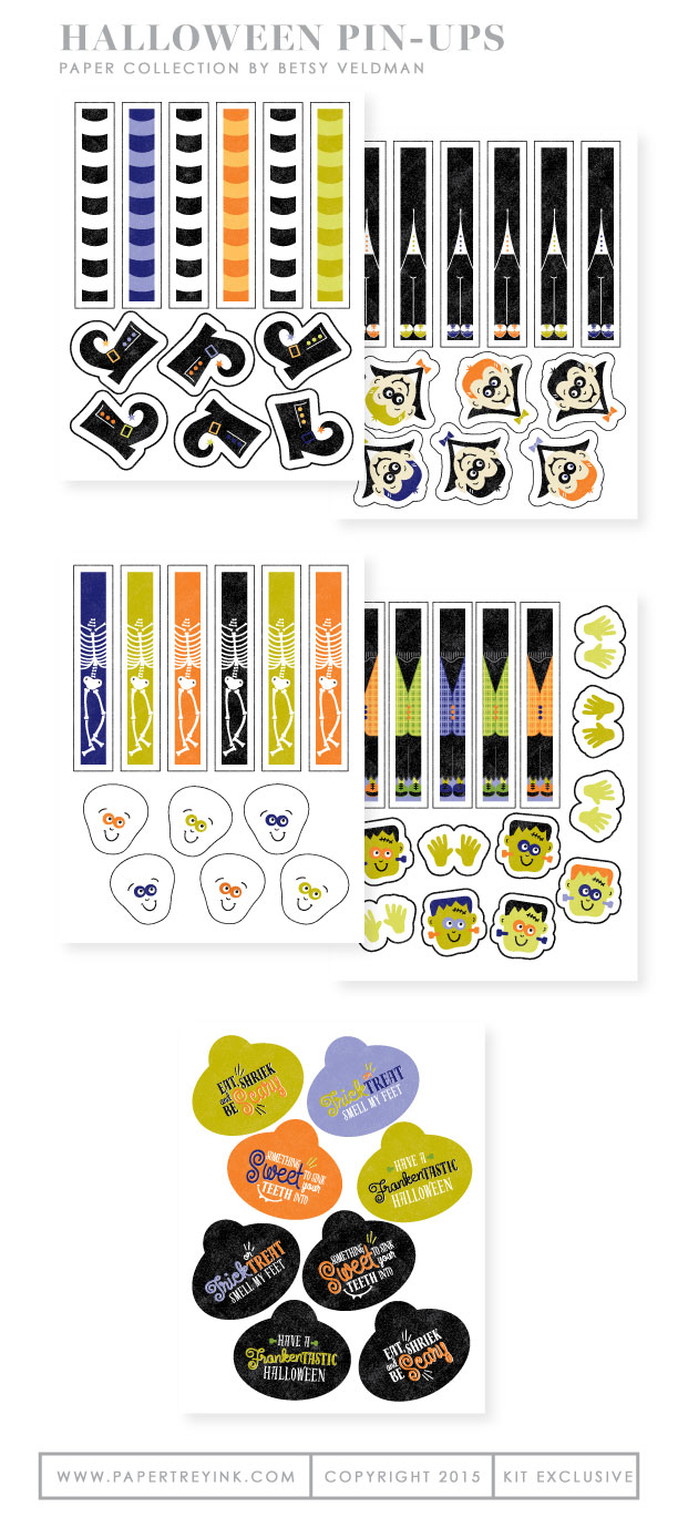 NOTE: We will also be selling a Halloween Pin-Ups refill paper collection for this kit as a separate item. It will include 3 sheets each of the 5 designs, for a total of 15 sheets. This refill paper collection will retail for $4 and will be available for sale on release night.