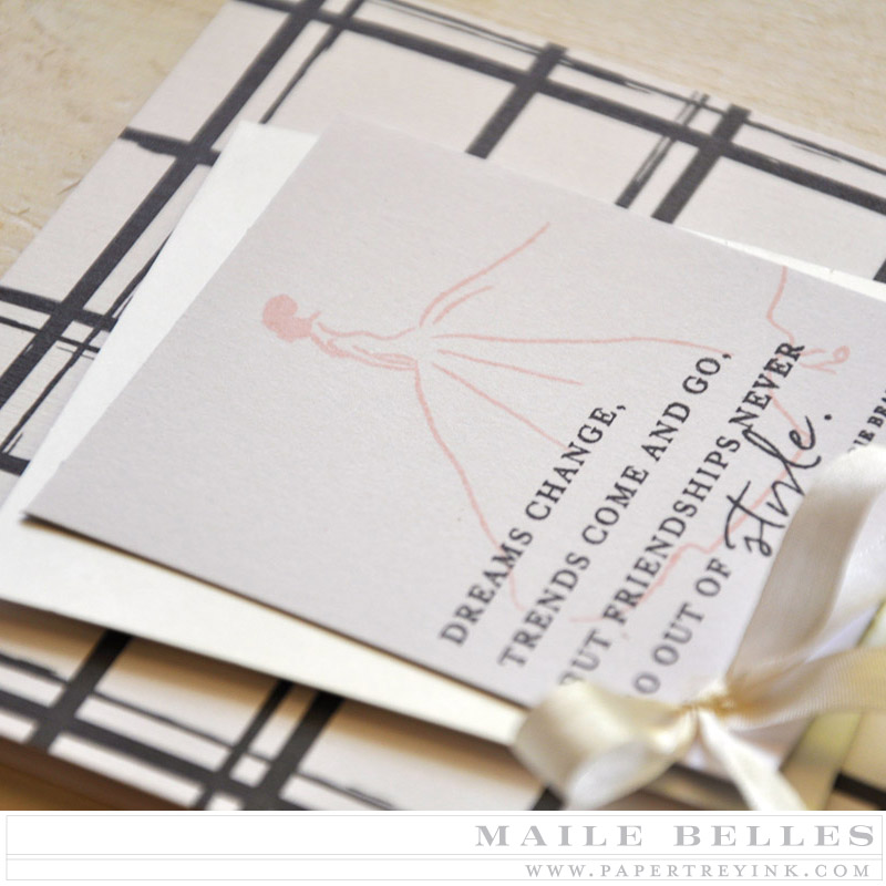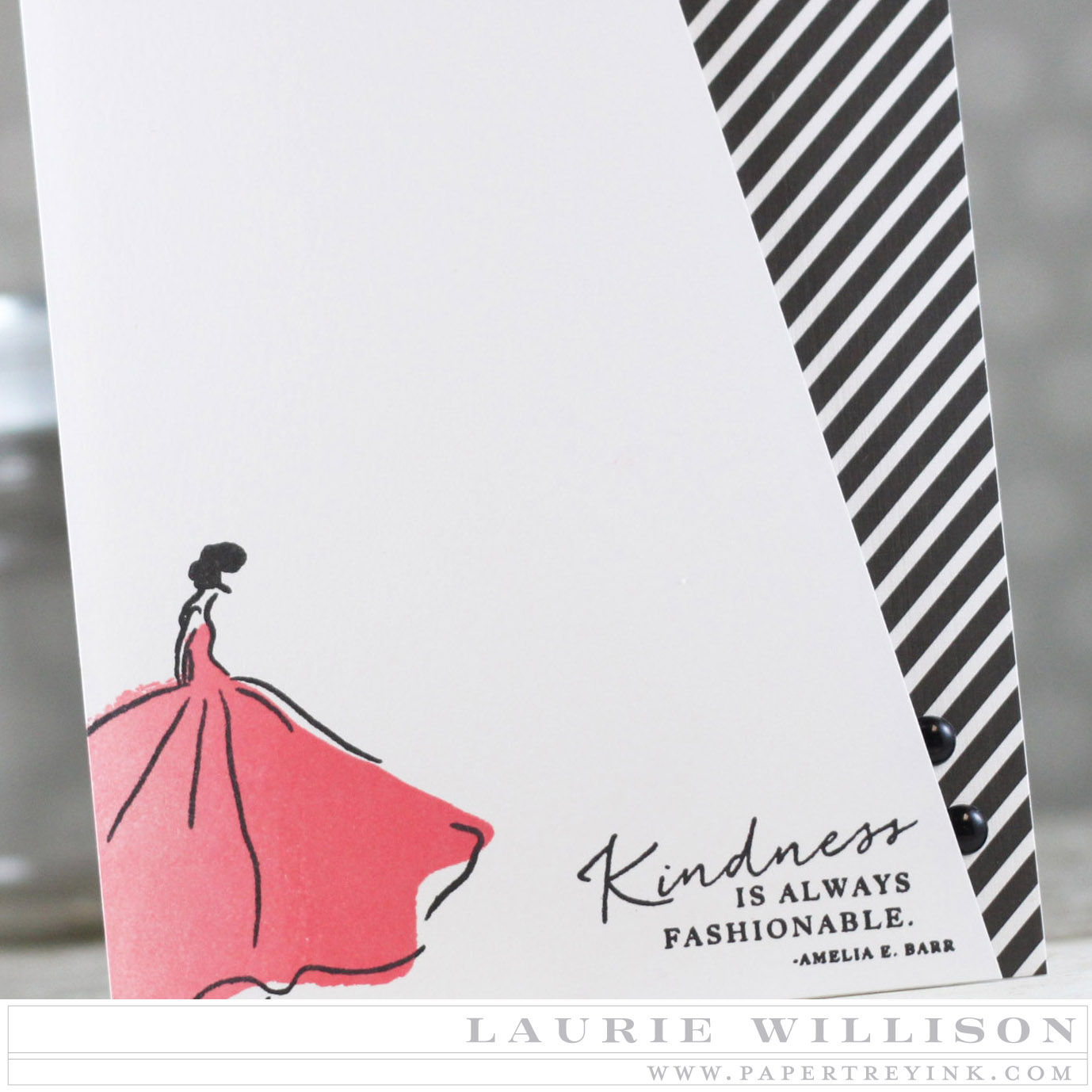 I stamped the whole Classic Kraft card base with Charcoal Palette ink, except for one model on the front in black allowing her to *stand out*.