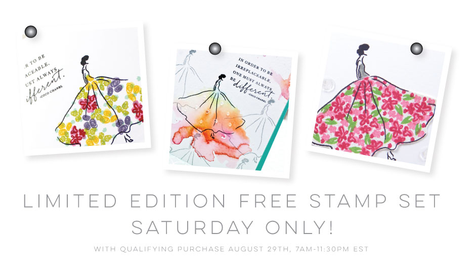 Fashion Sense will ONLY be available on Stamp-a-faire day to all customers who make a qualifying $100 purchase. All orders made between 7am EST and 11:30pm EST on Stamp-a-faire Day tomorrow (August 29, 2015) that total $100 (before shipping) will receive the set for FREE! You will still earn Rewards Points on your order too, so it's an amazing offer!