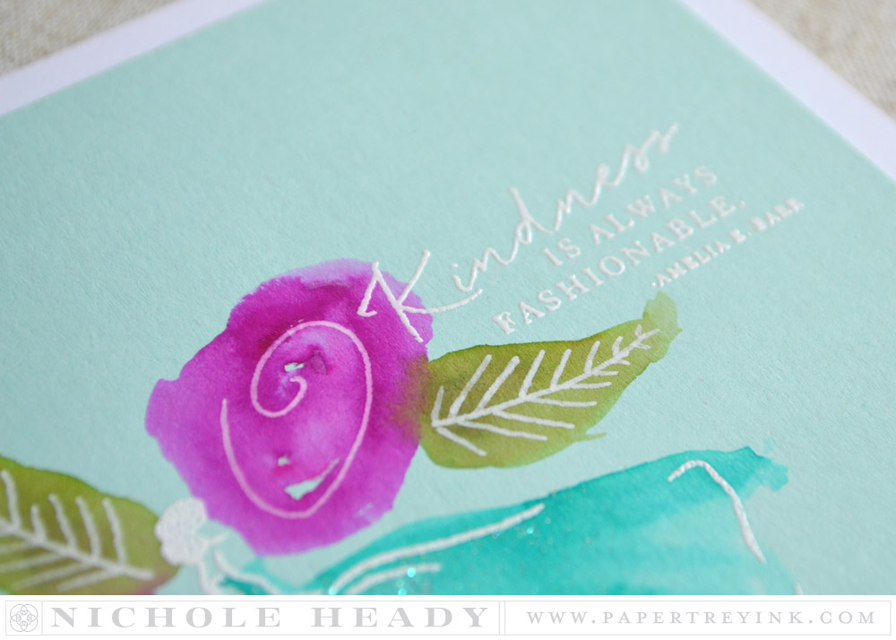 For the flowers and leaves I just scribbled with the markers and watercolored over them. After they dried I wen back in and added some details with a white gel pen. The sentiment was heat embossed last.