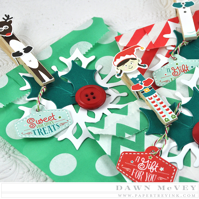 Dawn says, "Betsy has done it again with adorable, yet quick and easy treat packaging, as well as another super cute Petite Places set! I had a lot of fun playing with all of these items, to create some treat bags that are ready to be filled with holiday treats, as well as a layered little gift tag featuring Santa's Village! I hope you'll stop by to check them out!"