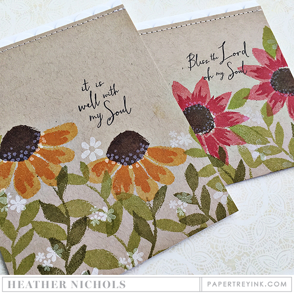 Walk By Faith, the new sentiment set from Heather Nichols is really gorgeous and easily sets off a project, not to mention it delivers a powerful message as well. I stamped this particular sentiment in True Black at the center of the garland frame.