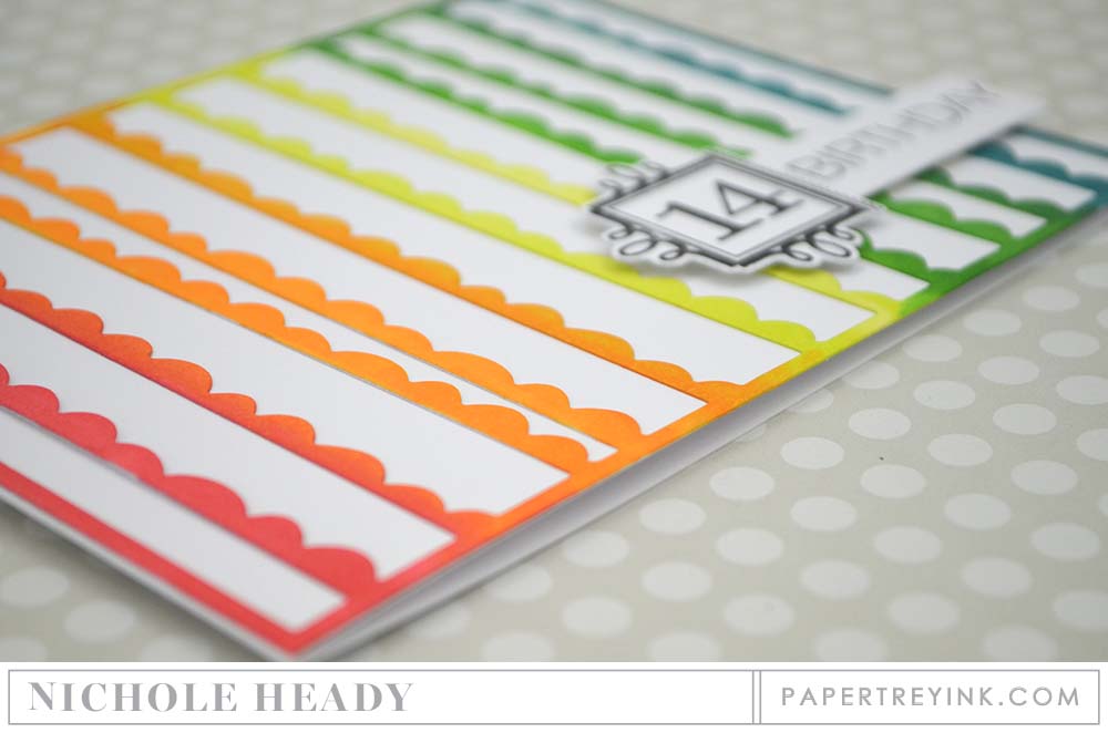 As soon as I saw Maile's new Cover Plate: Scalloped die, I knew that I wanted to try to do a rainbow effect with it. I opted to use Copic markers to achieve this and I was really happy with the results.