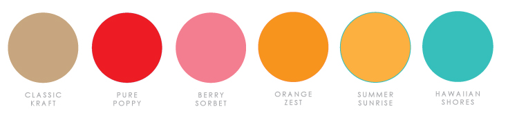 - INK: Tropical Teal, Saffron Spice, Hawaiian Shores, New Leaf, Berry Sorbet, Pure Poppy