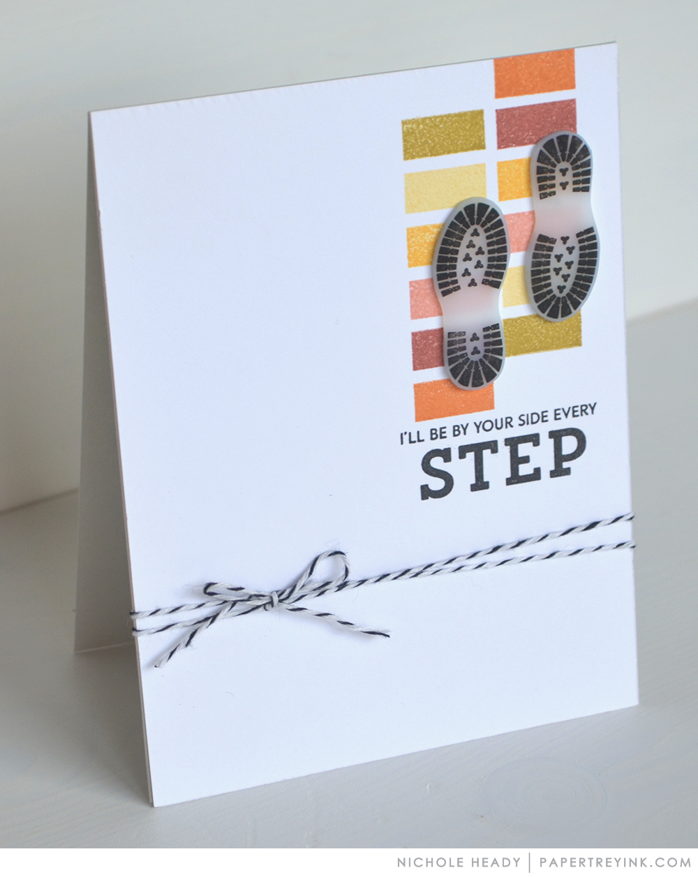 I stamped a background for the soles using a small rectangle included in the set. One of the included sentiments tucked in nicely underneath that.