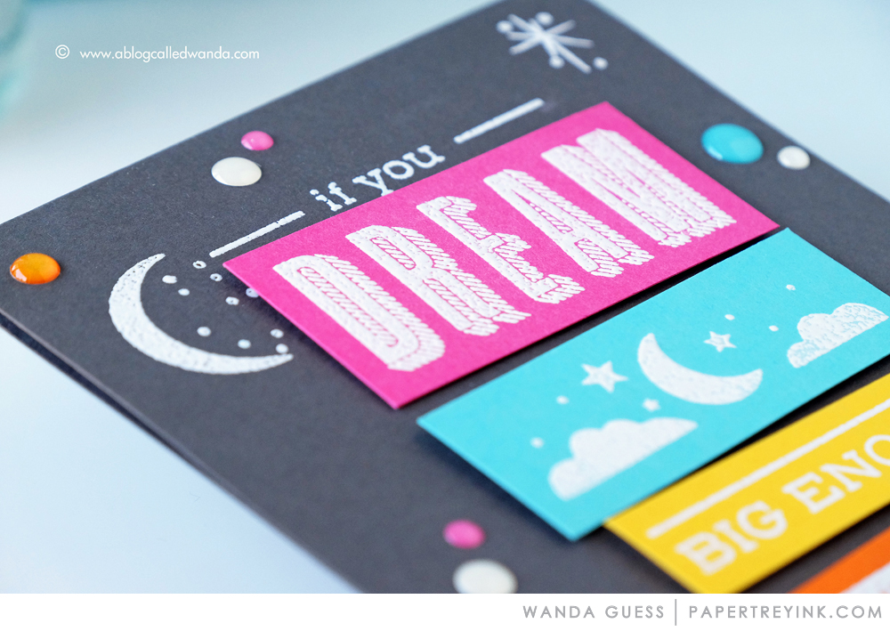 Wanda is always coming up with the most clever ideas and this concept using the Quoted: Dream Big set is genius. Breaking up the sentiments onto separate strips of cardstock gives a whole new look to this set.