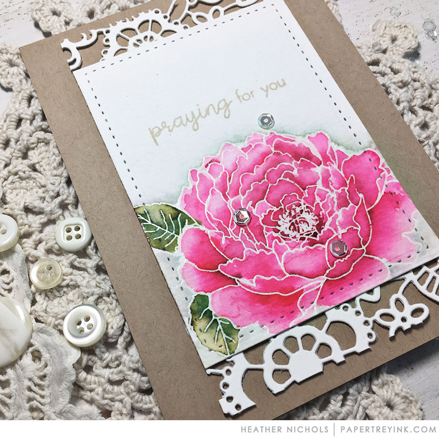 Keeping it classic always works, just like Keeway did here. The subtle watercoloring in the background creates the perfect backdrop for the flower and grounds both the focal and the sentiment.