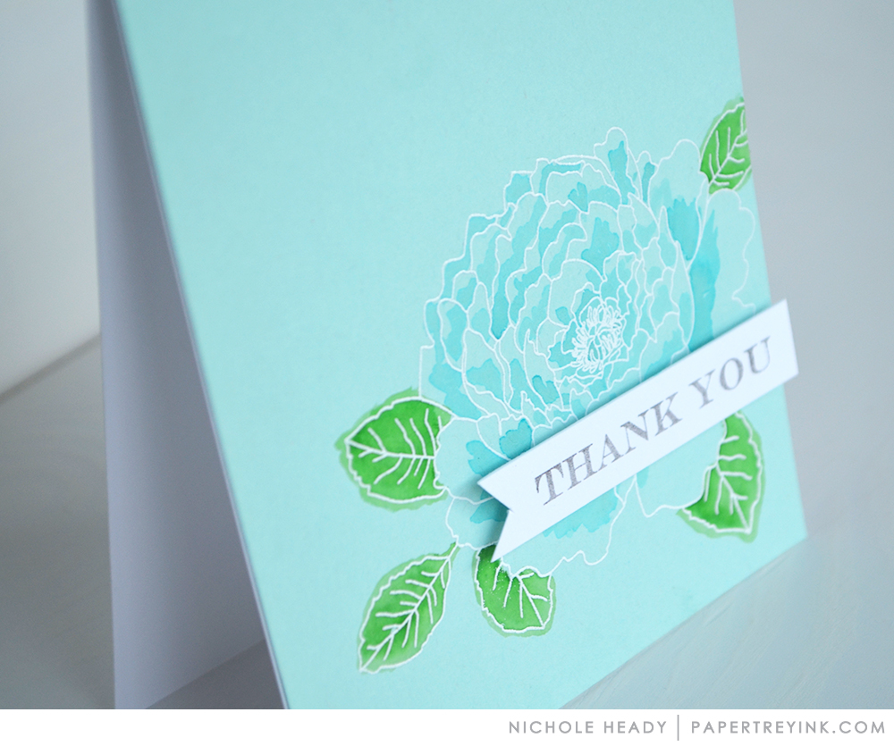 I heat embossed the floral image onto Aqua Mist cardstock, then added just a little color to the leaves, and some shading to the petals.