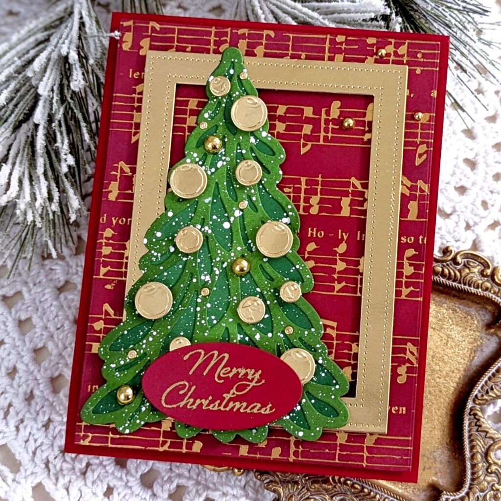 The Serene Evergreens dies are going to be keepers. Today I choose Betty Wright’s traditional red, green and gold card.