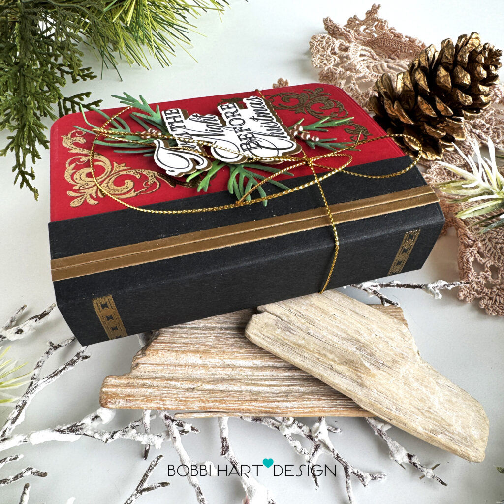 STEP 5 – Attach a gold string around the book to keep it in a closed position or add a self-adhesive Velcro closure to the inside. This card is ready to read! Give it to someone specials as a unique, handmade gift card holder for the holidays! The box is as special as the gift card inside!