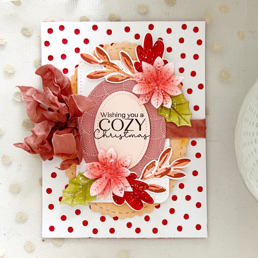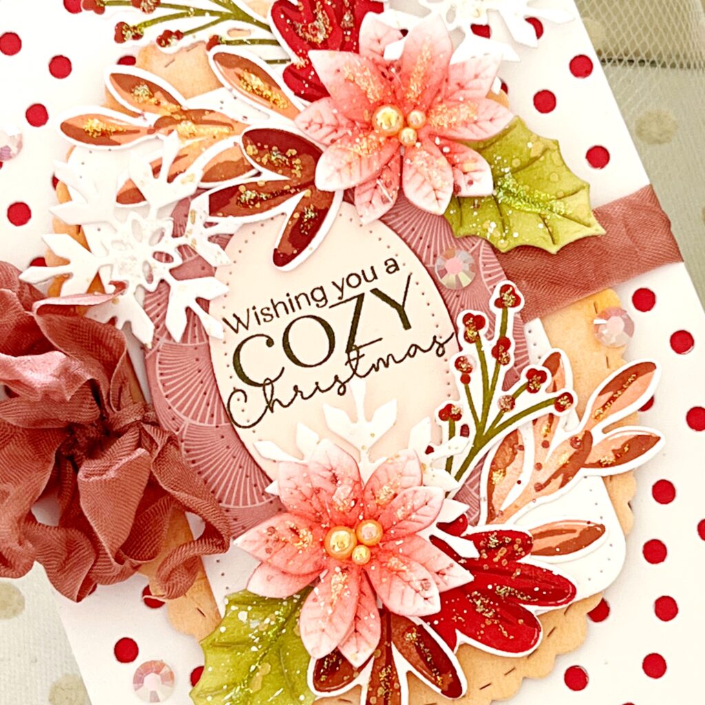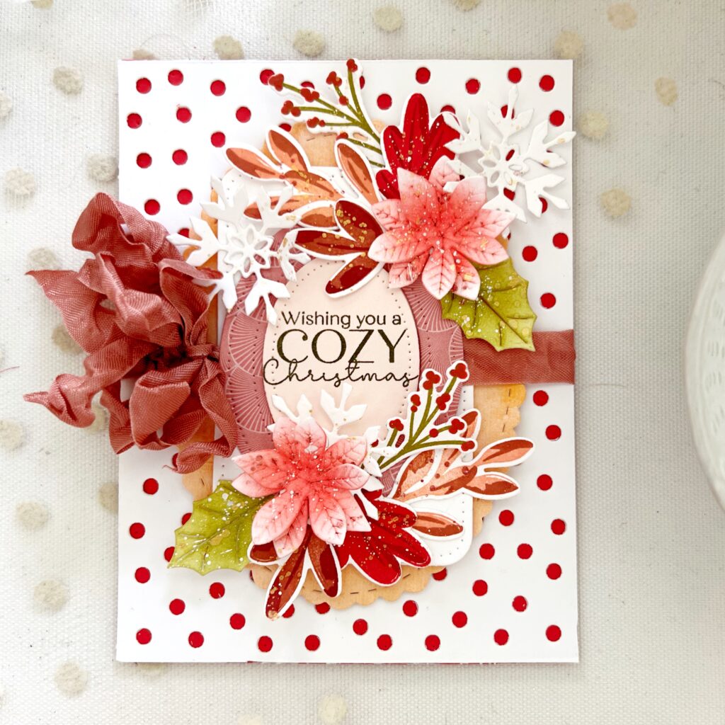 Melissa Phillips’ Cozy Christmas Card is filled with festive layers that radiate warmth and cheer. With vibrant poinsettias, delicate snowflakes, and rich holiday tones, her design captures the heart of Christmas in a way that feels both elegant and inviting.