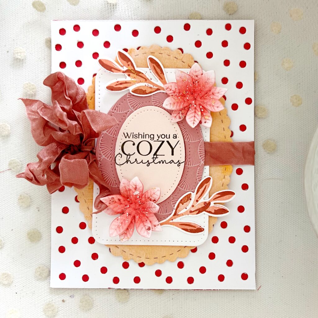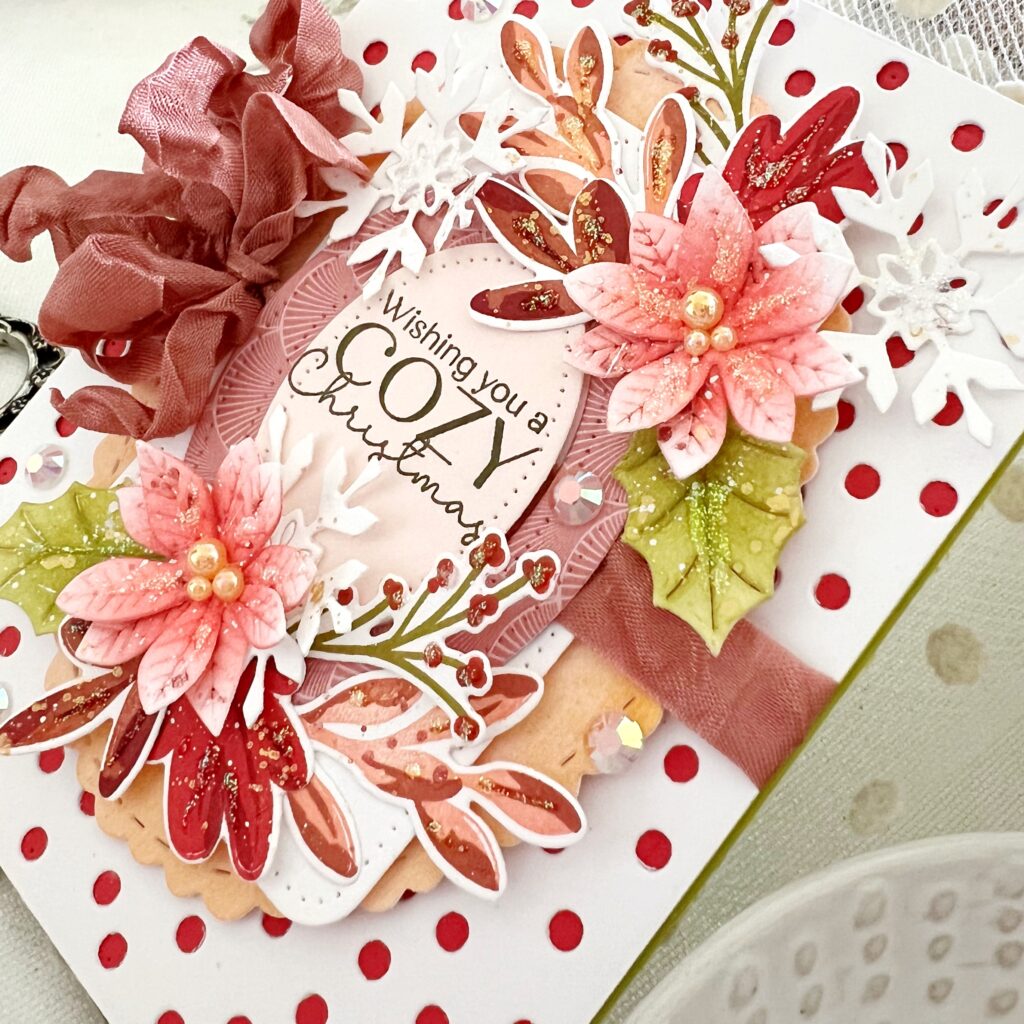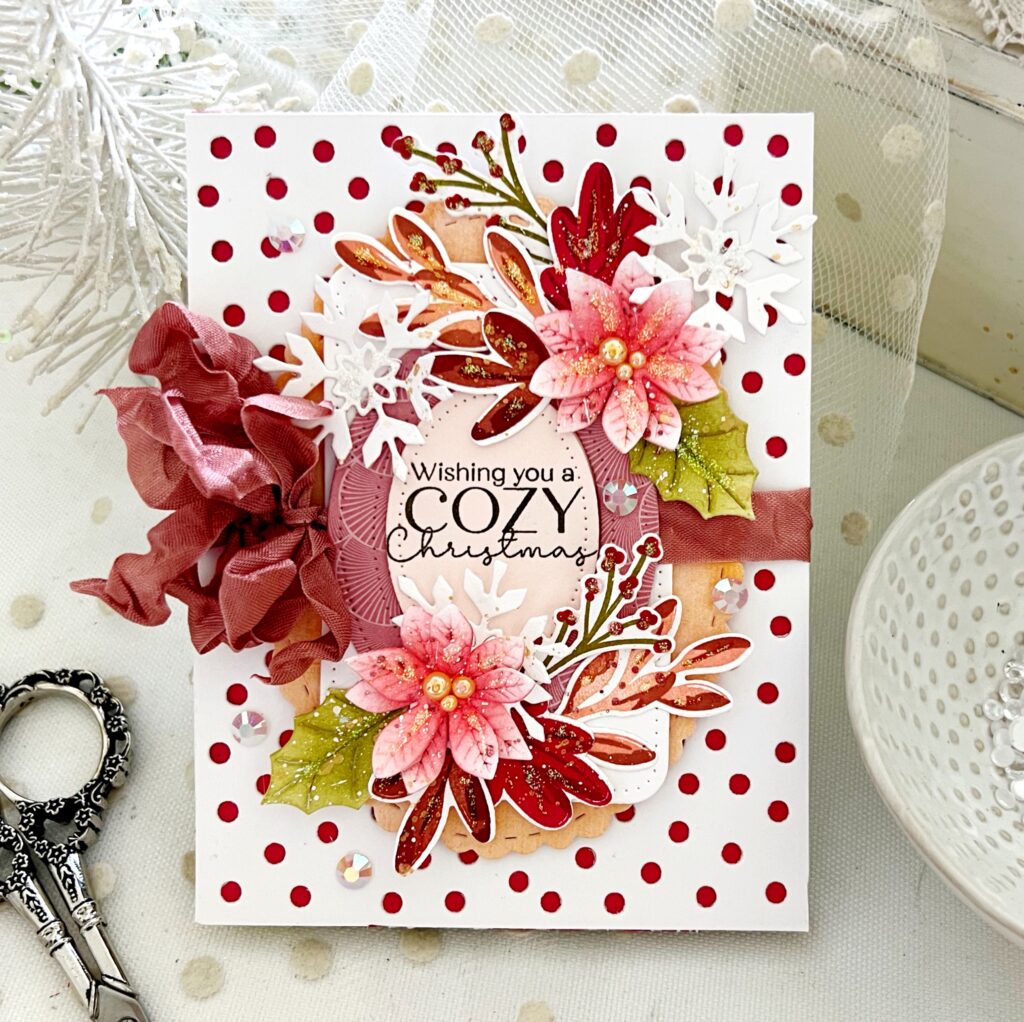 Melissa Phillips’ Cozy Christmas Card is filled with festive layers that radiate warmth and cheer. With vibrant poinsettias, delicate snowflakes, and rich holiday tones, her design captures the heart of Christmas in a way that feels both elegant and inviting.