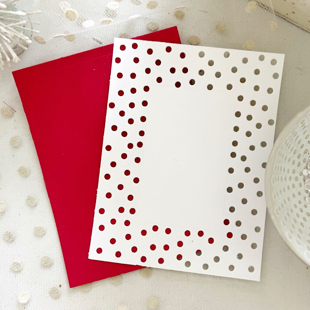 STEP 1: Cut an A2 card base from Pure Poppy and an A2 layer from white cardstock using a Cover Plate or Border Bling die.