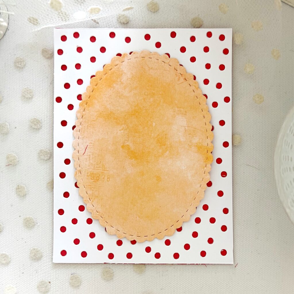 STEP 5: Adhere oval frame and stamped oval die cuts to center of card.