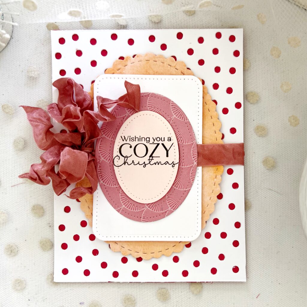 Melissa shares, “Fall into Christmas today as I use the beautiful Fall Blessings stamps and dies to create a cozy card for the holidays!”