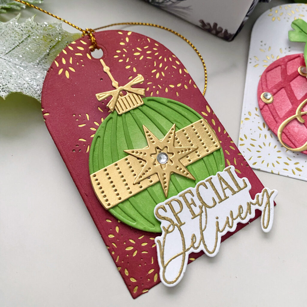 Cover Plate: Elegant Ornament Dies + Holiday Tag: Elegant Ornament Dies + This is Big Sentiments: Christmas Tags Stamps & Dies + Classic Alphabet Stamps & Dies + In Frames: Circles Dies