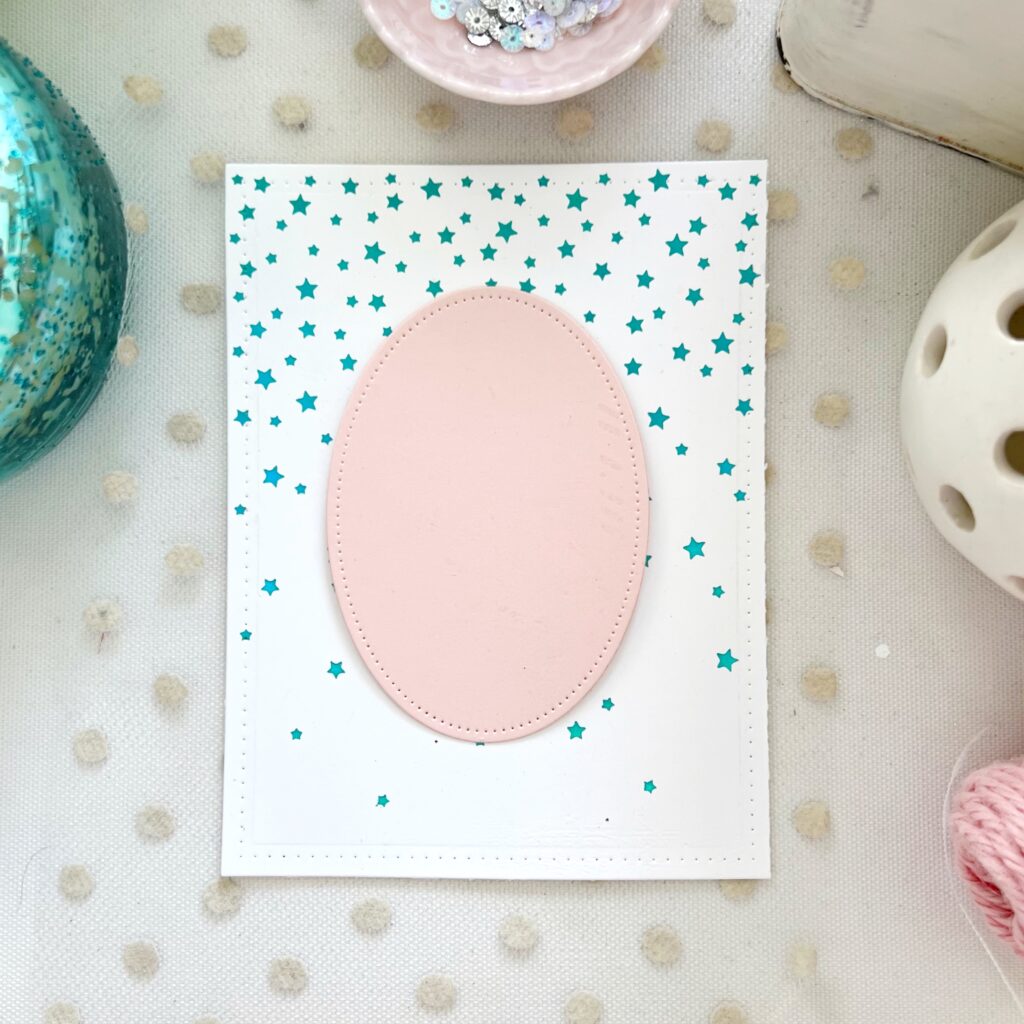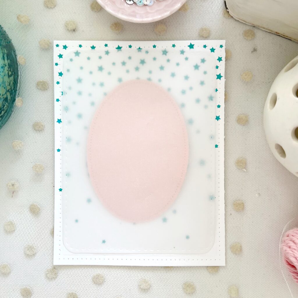 STEP 2: Cut a Sweet Blush oval and adhere to the center of card.