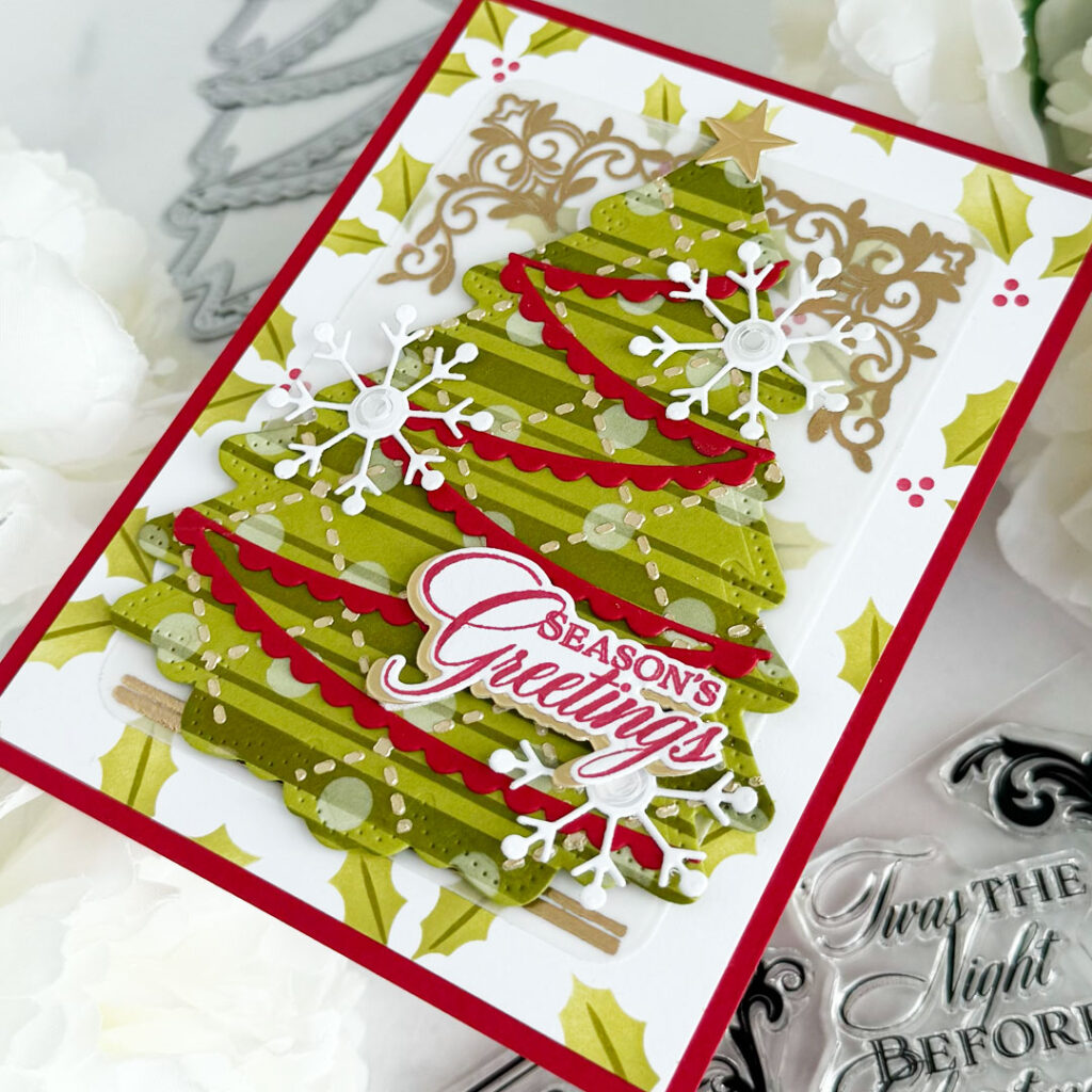 Dies: Love to Layer: Christmas Tree, Merry Motifs, Rounded Rectangles, Forever Snowflake Frame