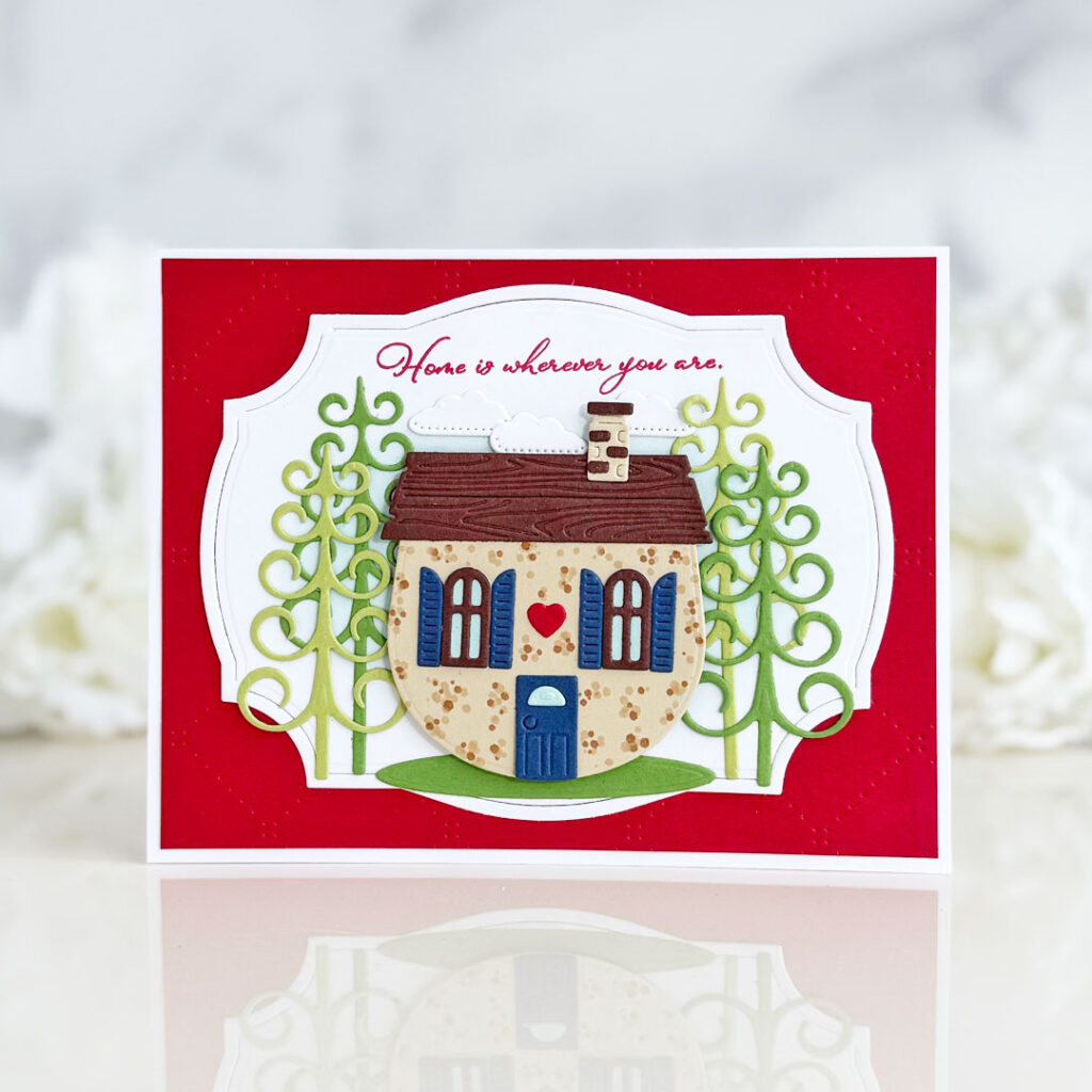 All of the designs are lovely. I’m especially drawn to Melissa’s “Home Is Where the Heart Is “ card. The combination of colors really caught my eye. I also really like how the scalloped oval die was used.