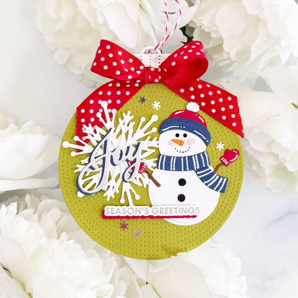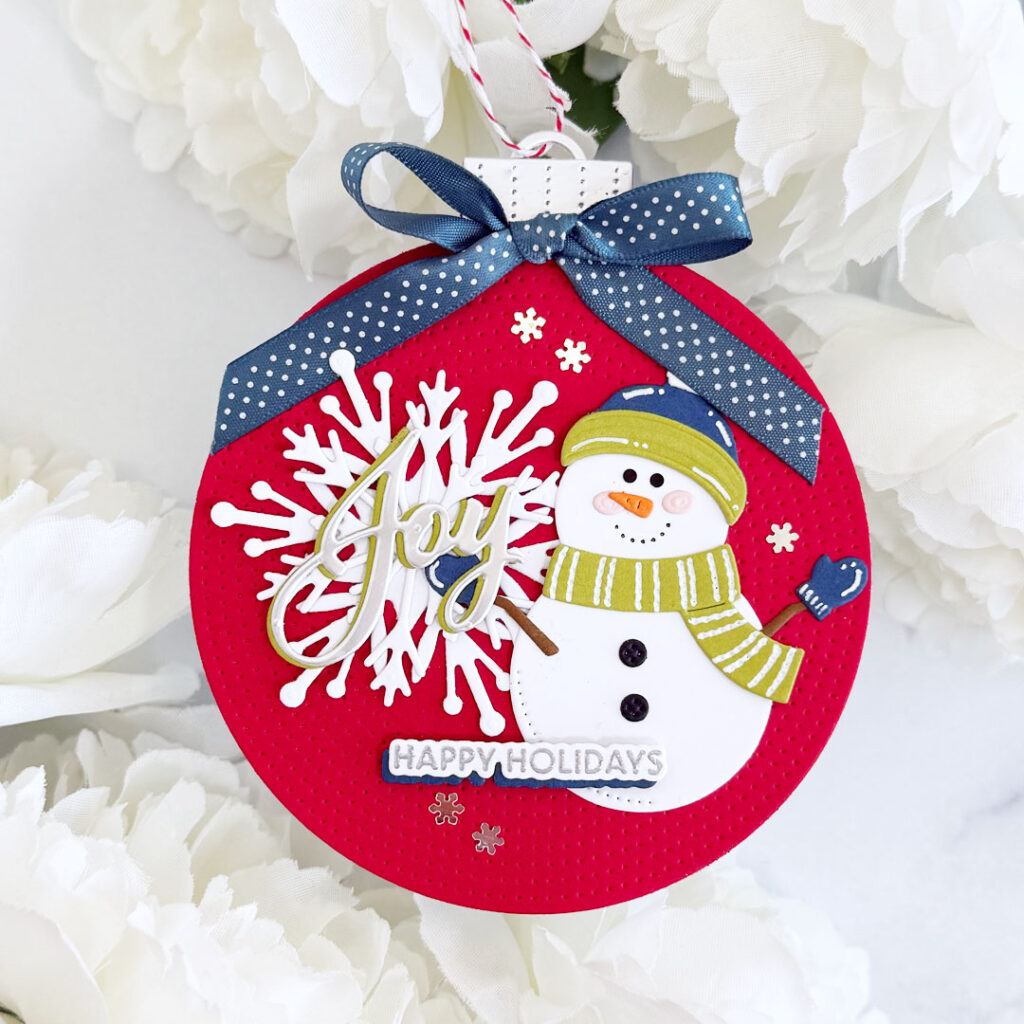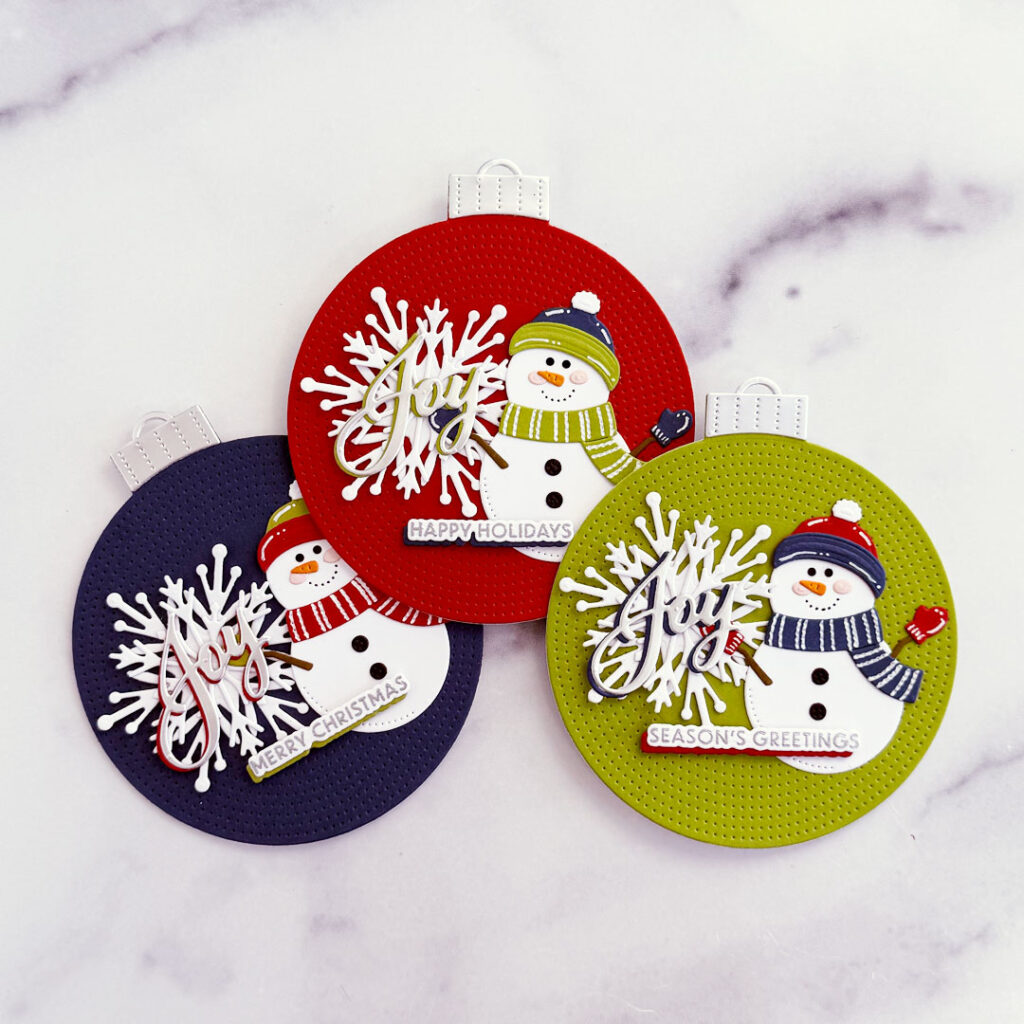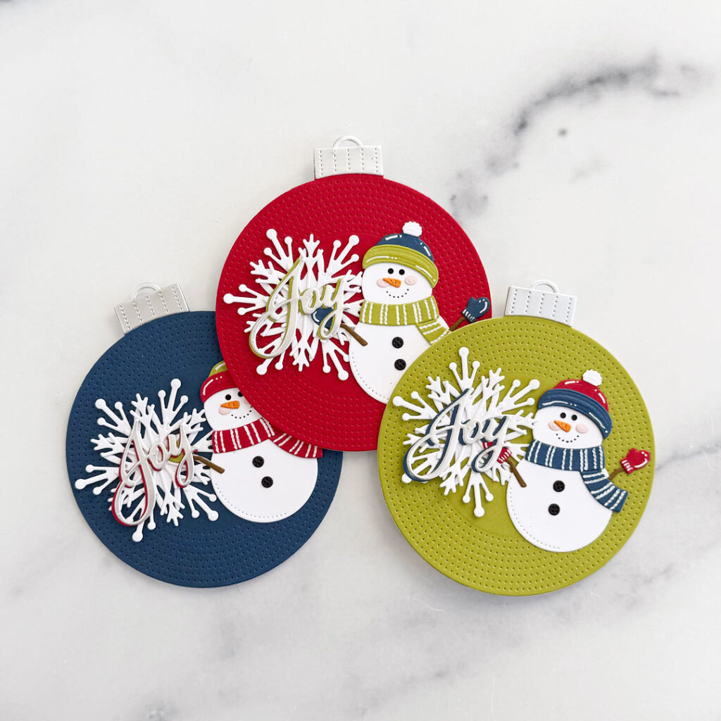 I decided to combine some of the Holiday Tag Die Sets from the latest release with the Timeless Ornament Die Set to create some snowman ornaments that double as gift card holders!!