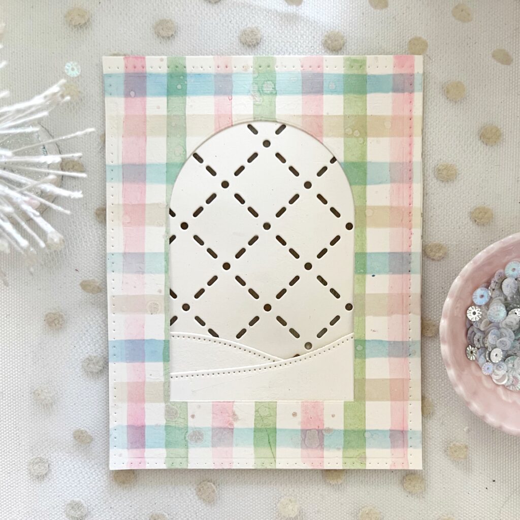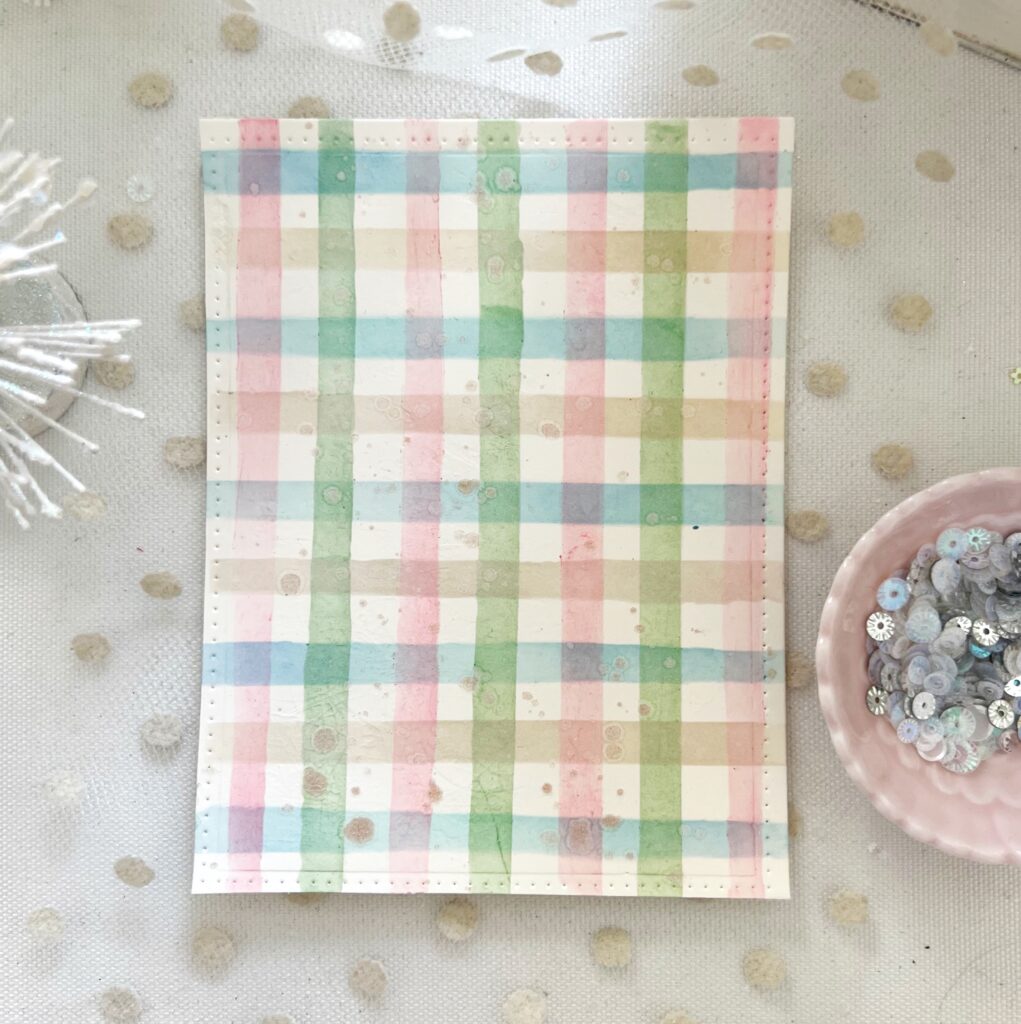 STEP 1: Stencil Vintage Cream card front using Watercolor Plaid stencil.
