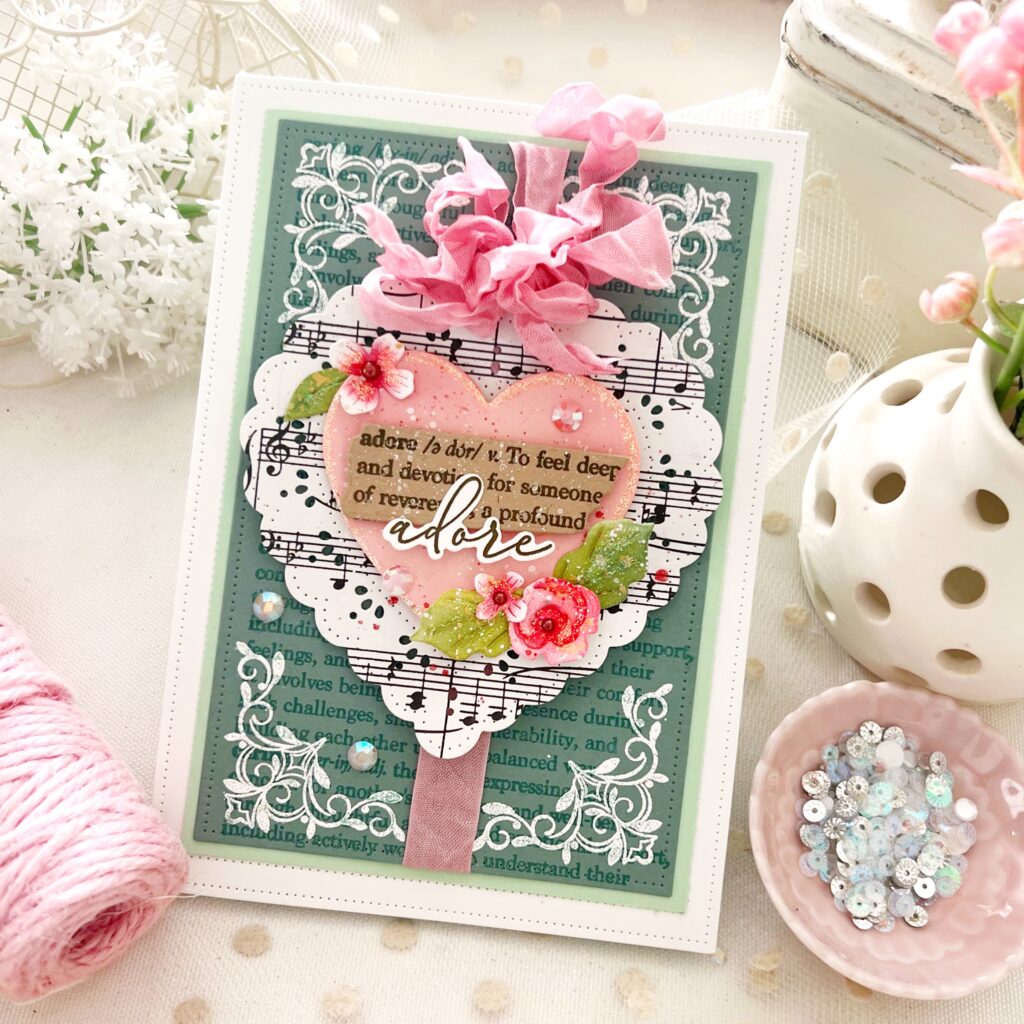 Oh my, so many beautiful inspirational cards to choose from. I think my most favorite is Melissa Phillips “Adore” card. I always love her vintage style. This one feels so romantic and timeless.