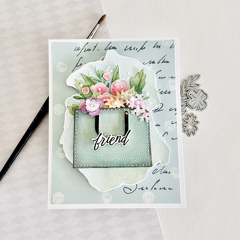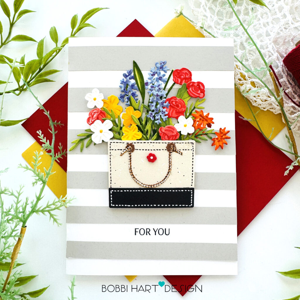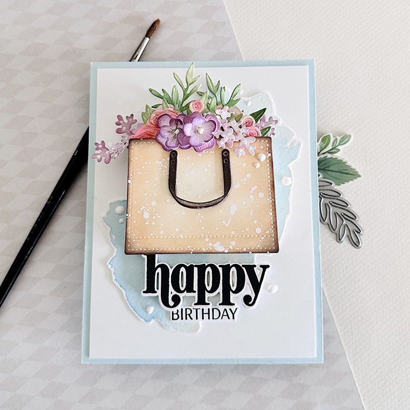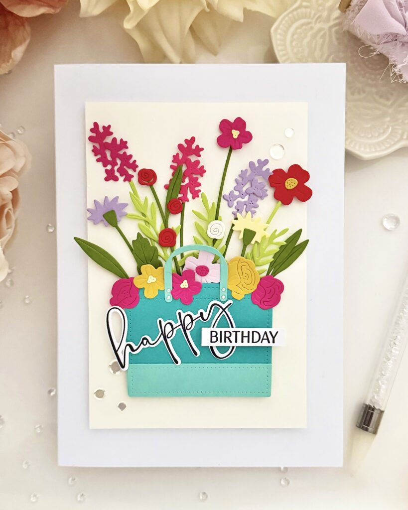 Create a charming gift bag overflowing with blooms using this beautifully detailed die collection. Layer blossoms, tuck in leafy accents, and arrange each element to design a full, dimensional bouquet that feels artfully composed.