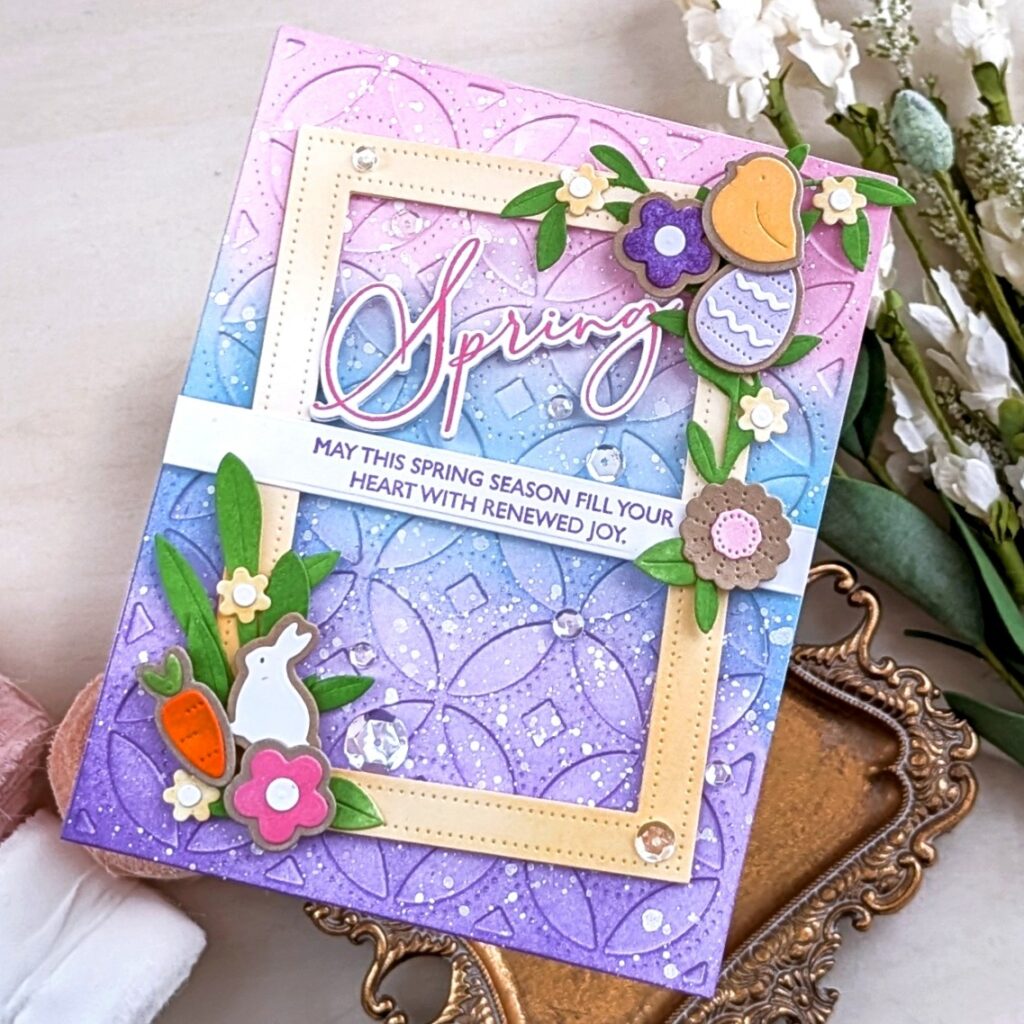 OTHER: speckled egg distress oxide spray, white gel pen, Framed in Floral Hot Foil Plate, gold foil, black marker, glitter