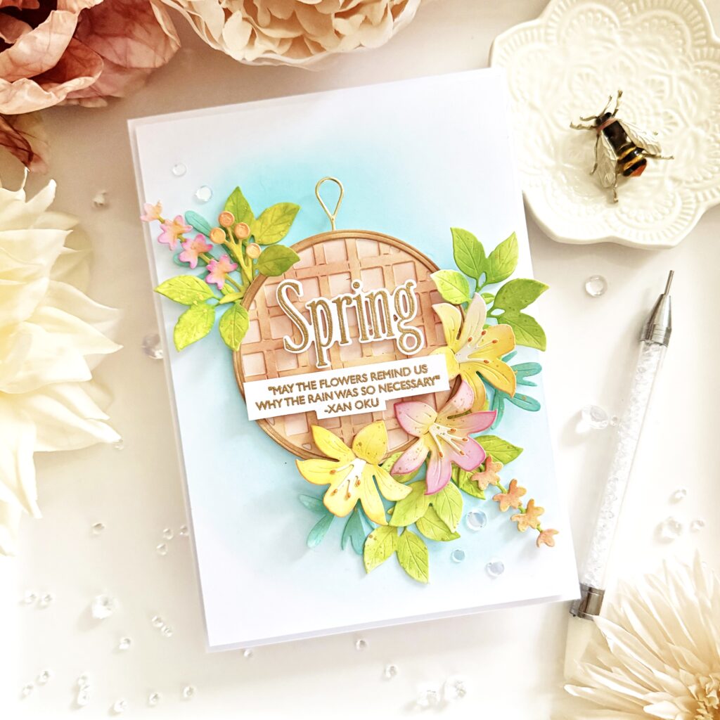 Really drawn to Melissa’s soft and romantic card featuring Into the Blooms: Spring Basket Dies!