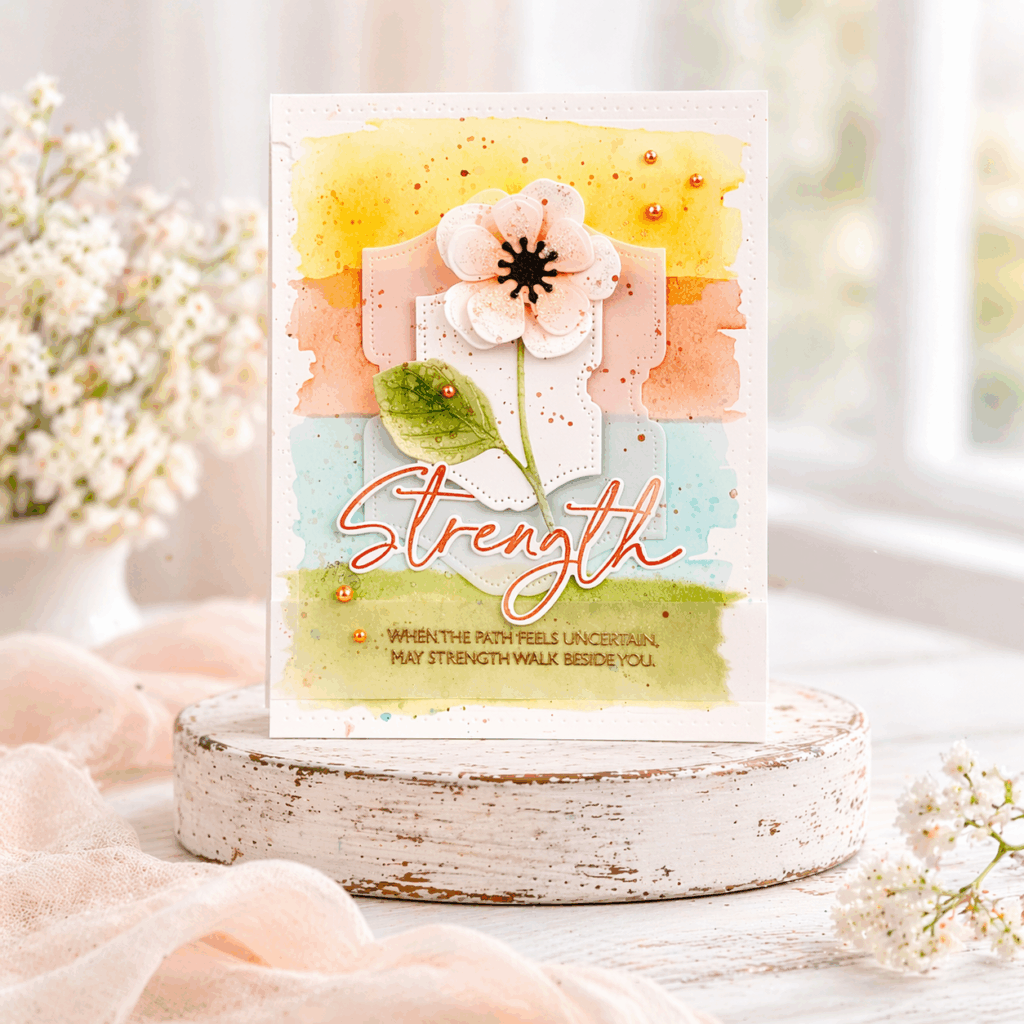 A powerful collection centered around encouragement and support. Featuring bold and script-style “Strength” sentiments along with heartfelt messages, this set is designed to stand on its own or pair with softer elements for a balanced, meaningful design.