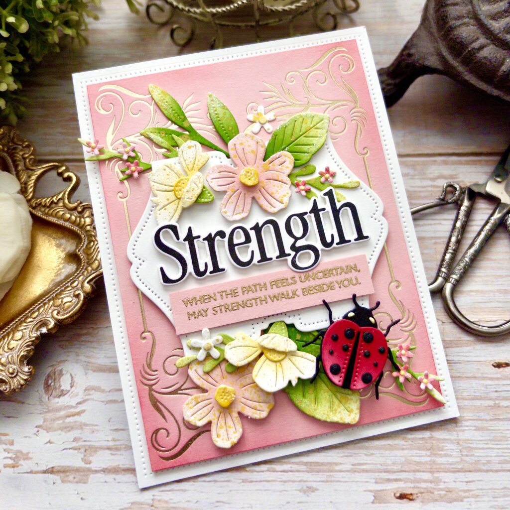 This is Big Sentiments: Strength Stamp Set & Die + Regal Flourish Frame Hot Foil Plate + Love to Layer: Top Notch + Brushstrokes Stencil Collection