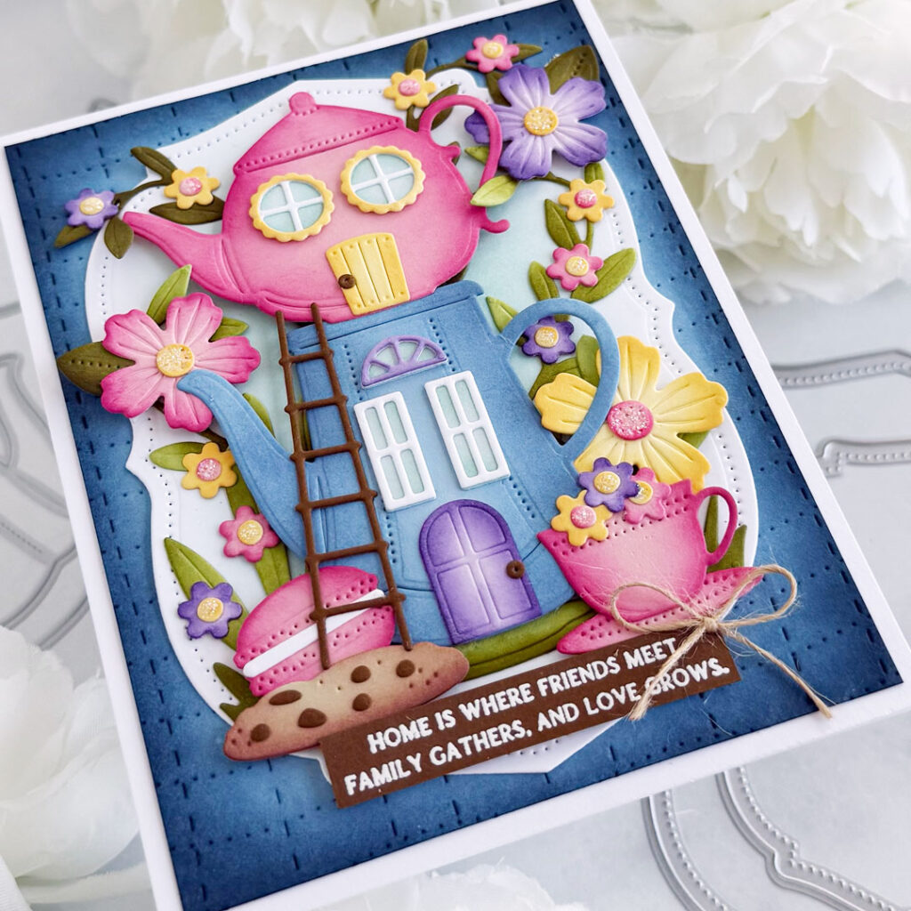 Happy Easter, fellow crafters!! Brenda back with you today!! Easter is the perfect time to celebrate fresh beginnings, sweet moments, and the joy of creating something heartfelt to share with the ones you love!! I love the versatility of the Build-A-Teapot Die Set from the March release and the sentiment from the Home Is Where the Heart Is Sentiment Stamp Set paired perfectly with it!! I chose to lean into the whimsicality of the Build-A Teapot Die Set for my sweet card today!!