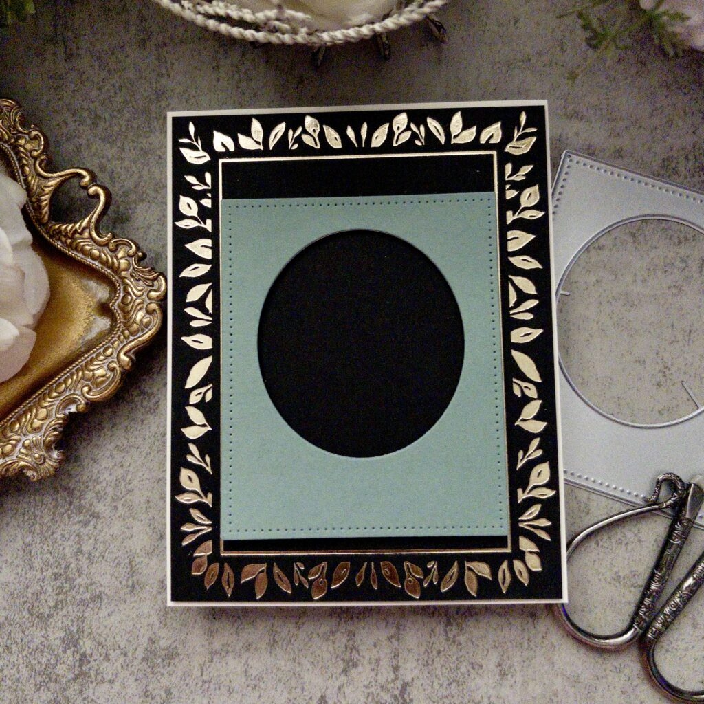 STEP 2: Cut the frame from Ocean Tides cardstock and attach it to the black panel using foam squares.