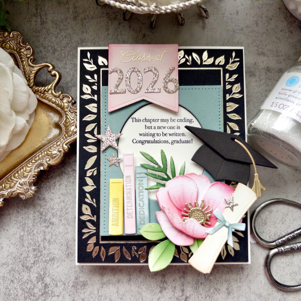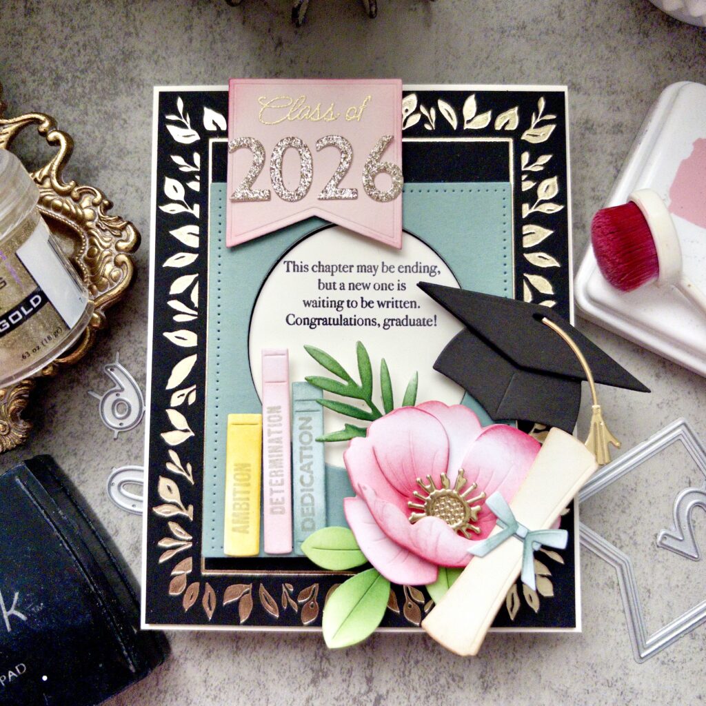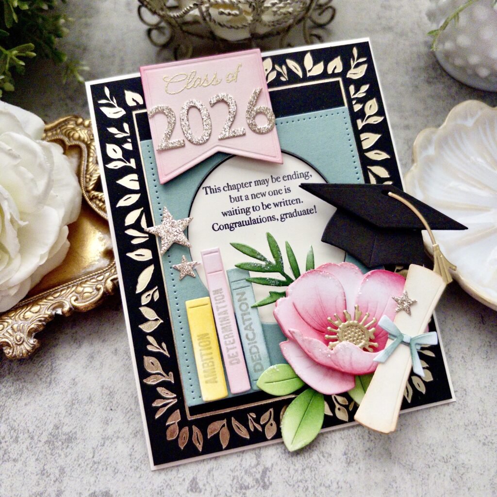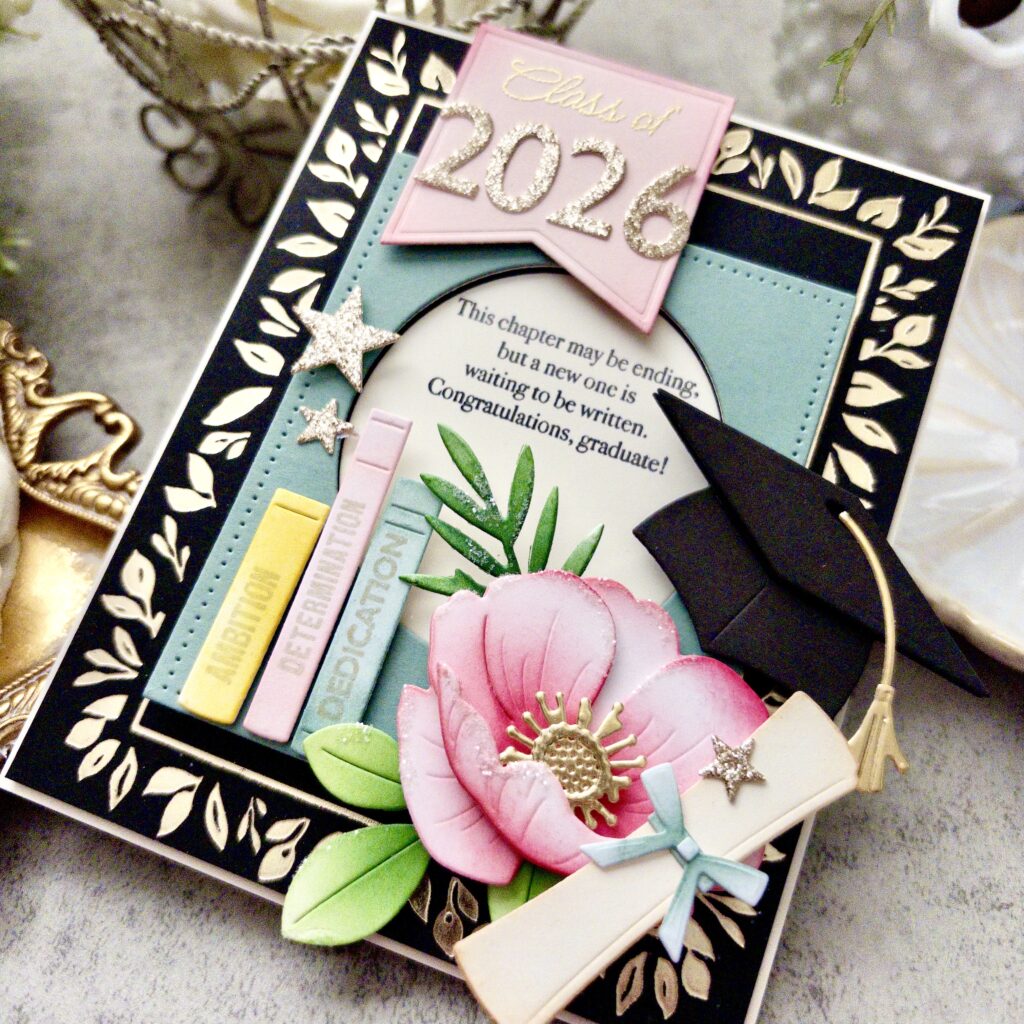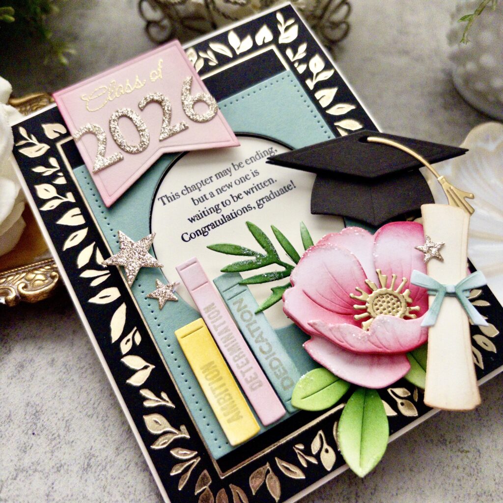 This project is a beautiful reminder that milestone cards can be both meaningful and keepsake worthy when thoughtful details tell a story. ✨ From the scholarly motifs and dimensional layers to the soft florals and gleaming gold accents, Kelly’s design offers wonderful inspiration for celebrating graduates in a personal way. Whether you’re creating for a commencement, academic achievement, or another new chapter, let this card inspire your own layered storytelling.