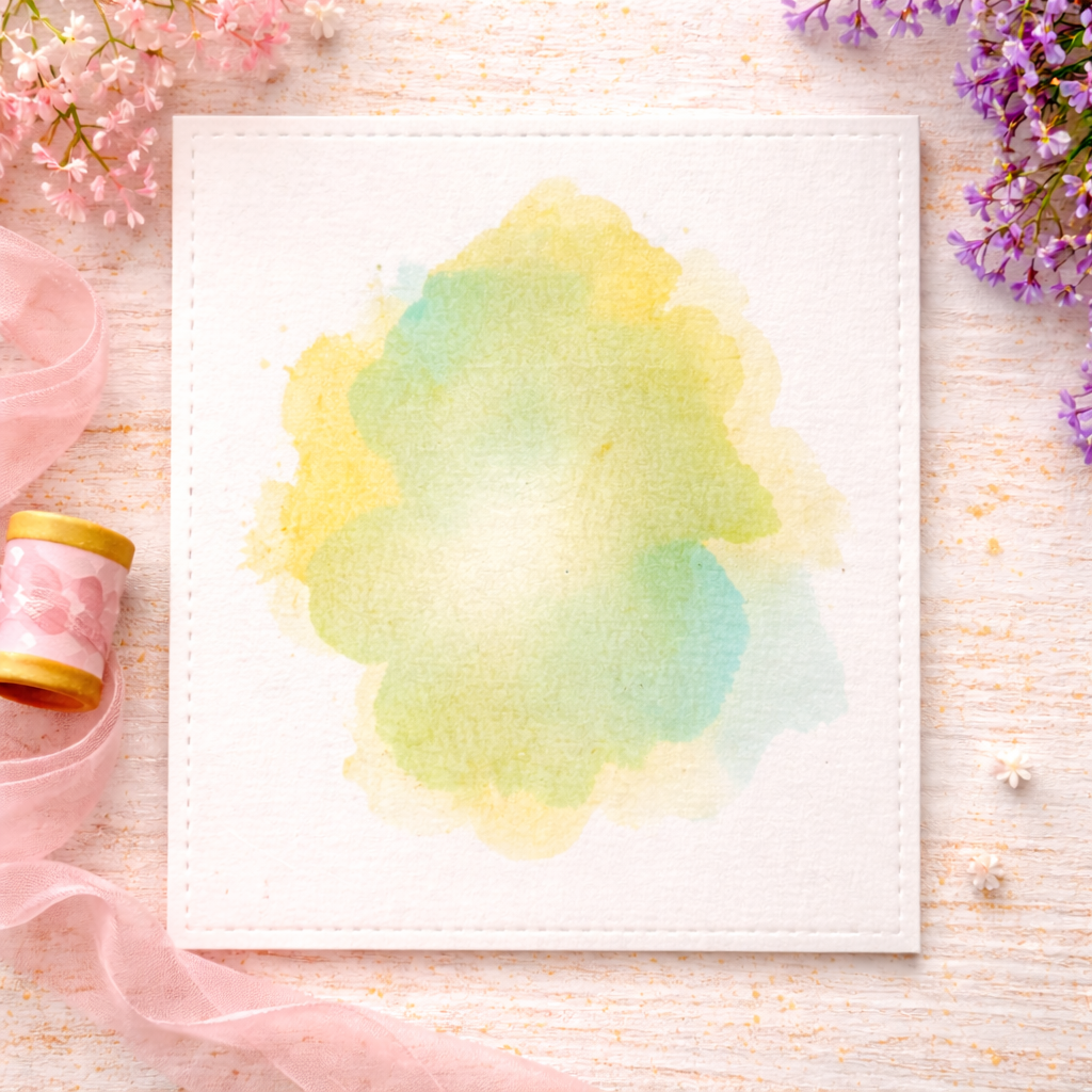STEP 3: Center the Watercolor Wonderful stencils, one at a time, over the center of you card and add ink to add soft splashes of color over your card.